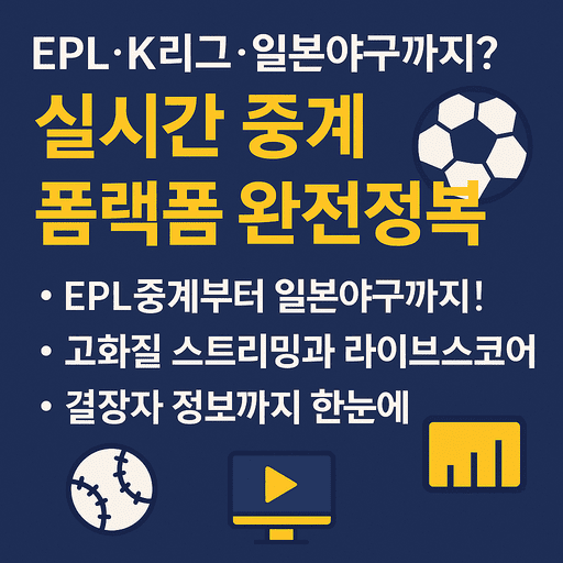 EPL·K리그·일본야구까지? 스포츠중계 플랫폼 완전정복 2025년 현재, 전 세계 스포츠 팬들이 가장 많이 찾는 키워드는 단연 ‘실시간 스포츠중계’입니다. EPL중계, 일본야구,...
